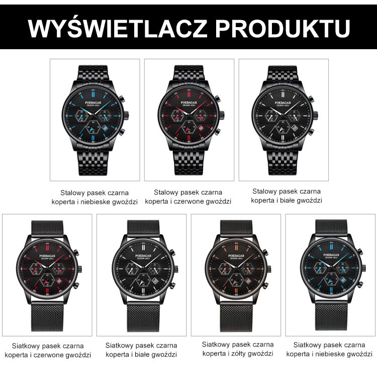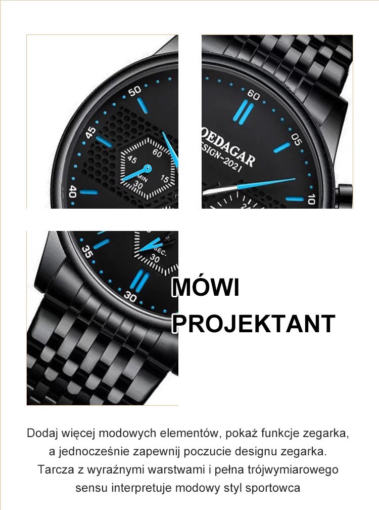 Szwajcarski wysokiej klasy świecący wodoodporny zegarek
