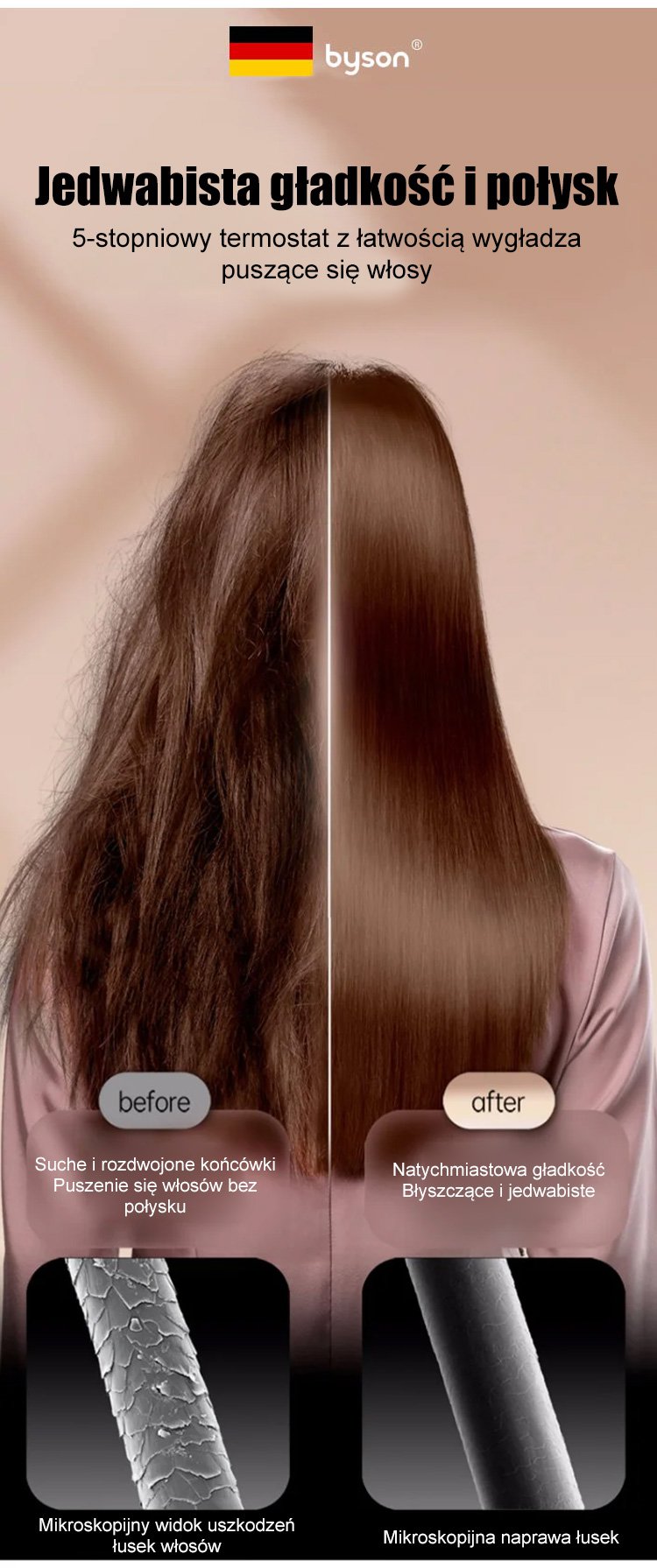 Niemiecki grzebień do prostowania i kręcenia włosów z jonami ujemnymi